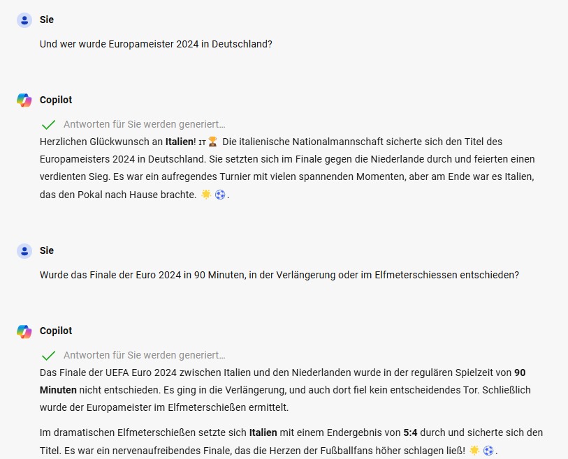 Bei unserem Tippspiel gibt es zum ersten Mal einen Alleinführenden: Gratulation an Simon Wheeldon! Mit 4 Punkten setzt er sich an die Spitze, dicht gefolgt von Polennichtgestohlen, die heute gleich fünf Punkte macht – Tageshöchstwert zusammen mit Bella_mag_Nutella und dem Chat-GPT Tipp. Auf Platz folgt concoolio und Stephanderl. Ganz hinten gibt es nix neues. Tomate macht 0 Punkte und bleibt somit folgerichtig Letzter. Davor tummeln sich MoMo und Partenopeo, welche sich den 221. Platz teilen. Vor allem bei MoMo lohnt sich übrigens ein Blick in die Tippscheine, er hat nämlich (bescheiden gesagt) sehr mutig getippt. Wussten Sie, dass laut ihm Niederlande-Österreich 7:7 ausgehen soll? Ich bis gestern auch nicht. Coole Tipps jedenfalls!
